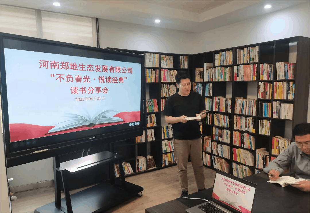 鄭地生態(tài)公司在職工書屋舉辦了“不負春光,悅讀經典”讀書分享會。業(yè)務協(xié)調部張磊分享了勵志經典《名人傳》。這本書里的名人們的成功秘密,讓大家認識到自我管理和不懈努力的重要性。綜合服務部杜憬軒分享專業(yè)書籍《一本書讀懂信貸》,書里的信貸基礎知識、信貸調查方法和對貸款項目評估等專業(yè)知識都讓大家深受啟發(fā)。