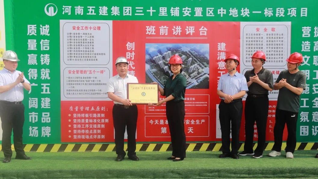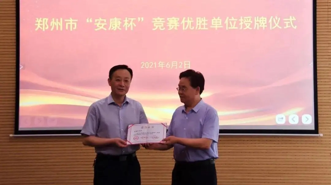 6月2日下午,鄭州市總工會機(jī)關(guān)工會主任王銀倉、市總工會勞動(dòng)和經(jīng)濟(jì)部部長宋慧分別向集團(tuán)兩家獲獎(jiǎng)公司頒發(fā)鄭州市“安康杯”競賽優(yōu)勝單位獎(jiǎng)牌。