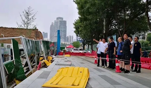 尤其是亳都古巷考古基坑面積較大,且全部被水淹沒(méi),該地塊東側(cè)緊鄰古城墻,西側(cè)緊鄰鄭州文廟和中建文苑,盲目抽排基坑積水可能會(huì)對(duì)周邊古建筑及居民小區(qū)帶來(lái)安全隱患。面對(duì)險(xiǎn)情,為確保項(xiàng)目現(xiàn)場(chǎng)安全,鄭州商都商業(yè)發(fā)展有限公司立即啟動(dòng)緊急預(yù)案,明確防汛搶險(xiǎn)責(zé)任分工,迅速開(kāi)展防汛搶險(xiǎn)工作。