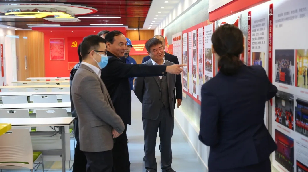在鄭地投資公司黨支部省醫(yī)項(xiàng)目部,投資公司黨支部書記、董事長(zhǎng)楚紀(jì)方詳細(xì)匯報(bào)了黨支部以黨建智慧“大腦”為依托,圍繞“紅色物聯(lián) 融通萬(wàn)物”黨建特色品牌”,全力構(gòu)建“113N”黨建工作體系的特色做法。驗(yàn)收組一行詳細(xì)觀摩了省醫(yī)項(xiàng)目“紅色物聯(lián) 融通萬(wàn)物”黨建示范點(diǎn)創(chuàng)建觀摩展廳。張晟組長(zhǎng)高度肯定了投資公司省醫(yī)項(xiàng)目、綠城廣場(chǎng)地下綜合開發(fā)等惠民項(xiàng)目在解決人民群眾“急難愁盼”問題中展現(xiàn)的責(zé)任擔(dān)當(dāng),強(qiáng)調(diào)要繼續(xù)堅(jiān)持用黨的創(chuàng)新理論破解項(xiàng)目發(fā)展難題,以新方法新作為開創(chuàng)工作新面貌,將黨建業(yè)務(wù)互促互融的政治優(yōu)勢(shì)轉(zhuǎn)化為項(xiàng)目建設(shè)優(yōu)勢(shì),把黨的政治優(yōu)勢(shì)轉(zhuǎn)化為項(xiàng)目中心工作發(fā)展的實(shí)際行動(dòng)。